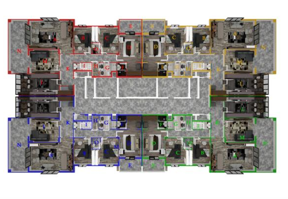 · Giriş holü ve gece holu bölümleri mimari olarak ayrılmış